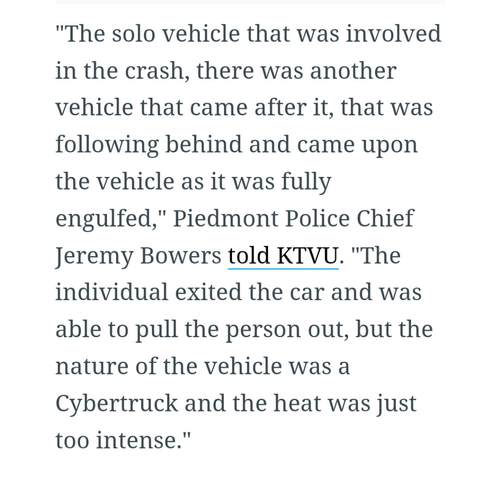 The nature of the vehicle was a Cybertruck